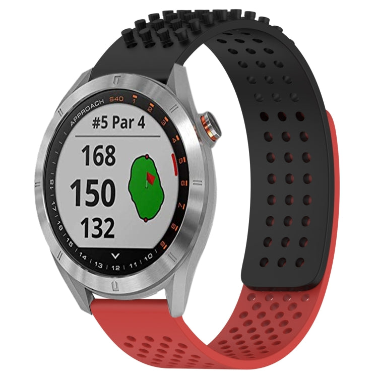Correa de Reloj Garmin Approach S40 Silicona Puntos 3D Transpirable Orificios 20mm (Negro + Rojo)