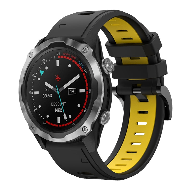 Banda de Reloj de Silicona Deportiva para Garmin Descent Mk 2 26mm (Negro + Amarillo)