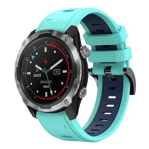Banda de Reloj Garmin Descent Mk 2 26mm silicona deportiva dos colores (Verde Menta + Azul)