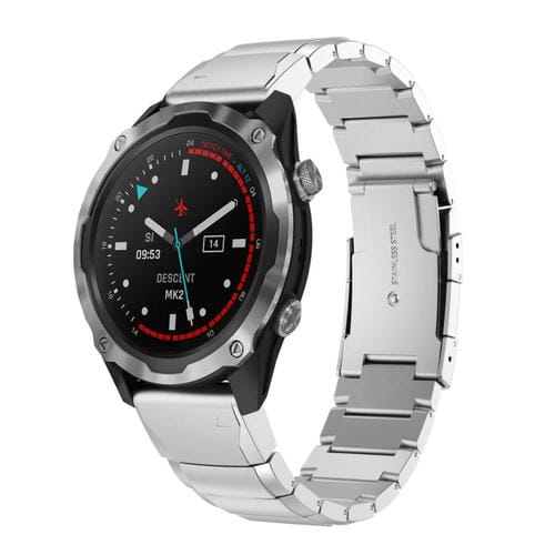 Correa de Reloj para Garmin Descent Mk2 de Acero Inoxidable Concha de Tortuga 26mm (Plata)