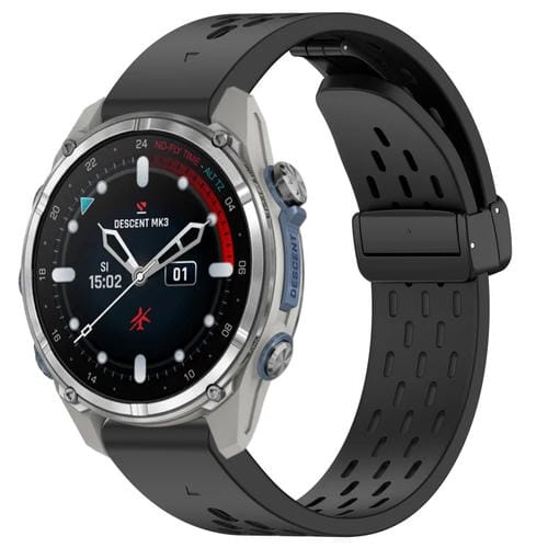 Correa de Silicona para Garmin Descent Mk3 43mm 20mm con Hebilla Plegable Magnética (Negro)