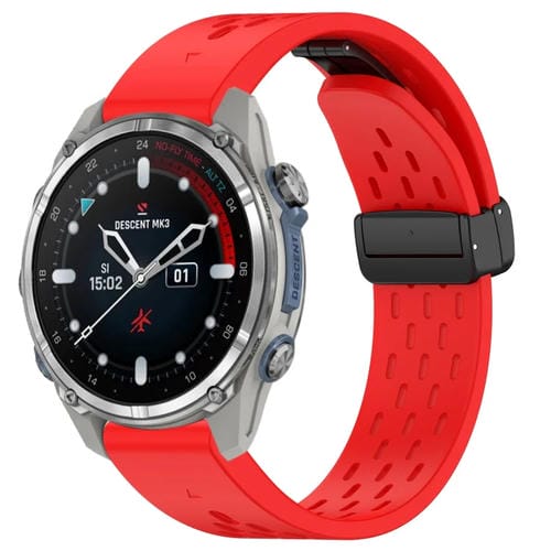 Correa de Reloj silicona para Garmin Descent Mk3 43mm 20mm con hebilla magnética (Rojo)