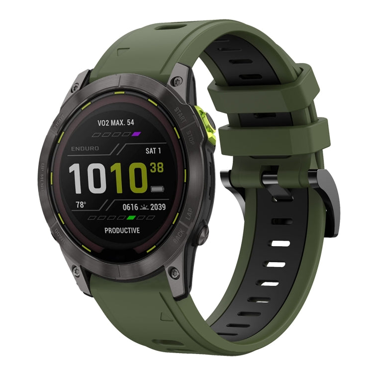 Banda de Reloj de Silicona Deportiva para Garmin Enduro 2 26mm (Verde Militar + Negro)