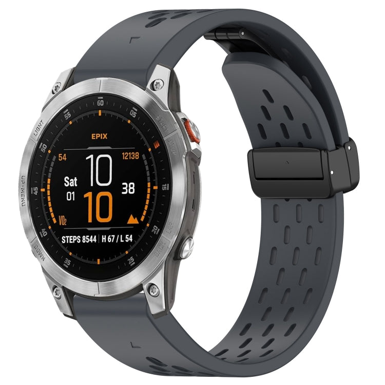 Correa de Reloj de Silicona para Garmin Epix Gen2 y Epix Pro Gen2 con Hebilla Plegable Magnética y Orificios 47mm (Gris Oscuro)
