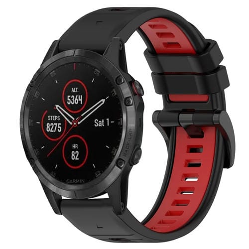 Correa de Silicona 22mm para Garmin Fenix 5 Plus Sports (Negro + Rojo)