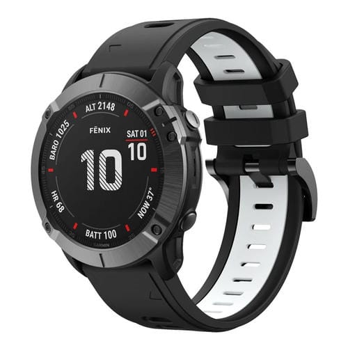 Banda de Reloj Silicona Deportiva para Garmin Fenix 6 GPS 22mm (Negro + Blanco)
