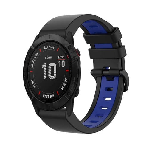Correa de Silicona Sports Band para Garmin Fenix 6X 26mm (Negro+Azul)