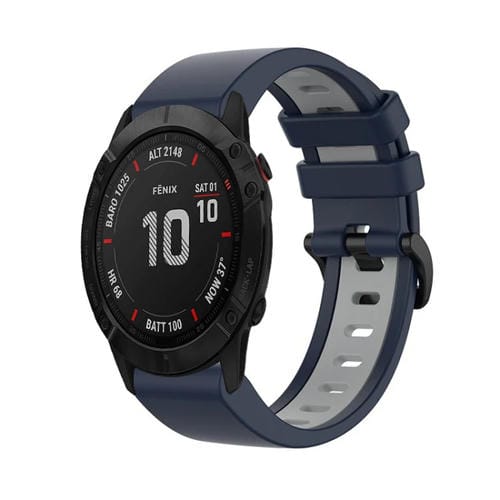 Correa Silicone Sports Band para Garmin Fenix 6X Pro 26mm (Azul Oscuro+Gris)