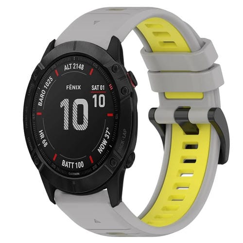 Correa silicona para Garmin Fenix 6X Sapphire 26mm Sports dos colores (Gris + Amarillo)