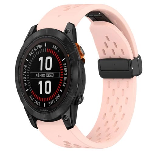 Correa de Reloj Silicona Garmin Fenix 7 Pro 47mm 22mm con Orificio y Hebilla Plegable (Rosa)