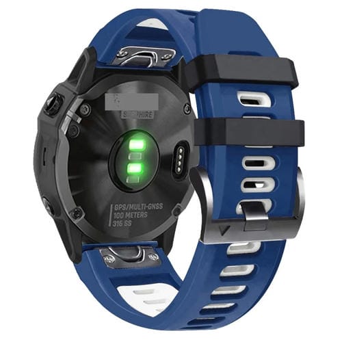 Correa de silicona para Garmin Fenix 7 Pro 51mm Sports bicolor (Azul Medianoche + Blanco)