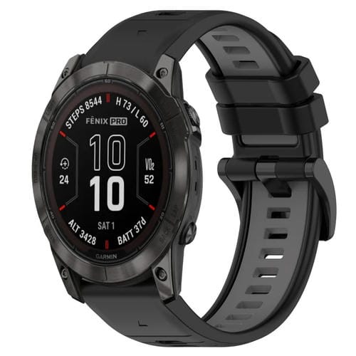 Correa de silicona para Garmin Fenix 7X Pro 51mm 26mm sports bicolor (Negro + Gris)