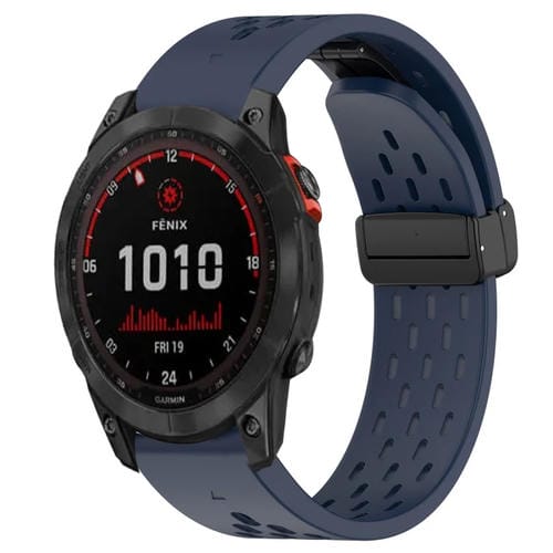 Correa de Reloj Silicona Garmin Fenix 7X Solar 26mm con Orificio y Hebilla Plegable (Azul Medianoche)