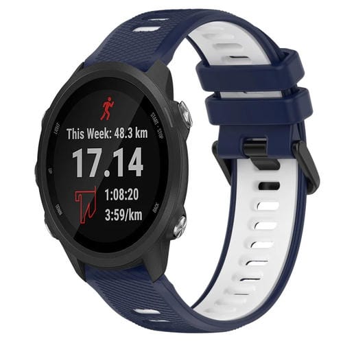 Correa deportiva silicona para Garmin Forerunner 245 20mm (Azul Medianoche + Blanco)
