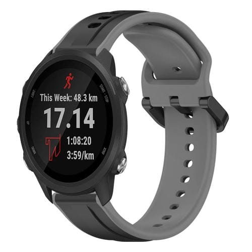 Banda de Reloj Silicona para Garmin Forerunner 245 Music 20mm (Negro + Gris)