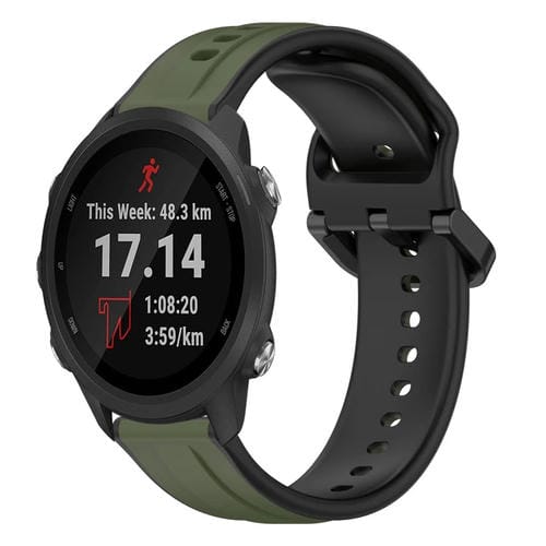 Banda de Reloj Garmin Forerunner 245 Music Silicona Dos Colores Bucle Convexo 20mm (Verde Oscuro + Negro)