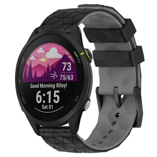 Banda de Reloj Garmin Forerunner 255 22mm silicona doble color patrón fútbol (Negro + Gris)