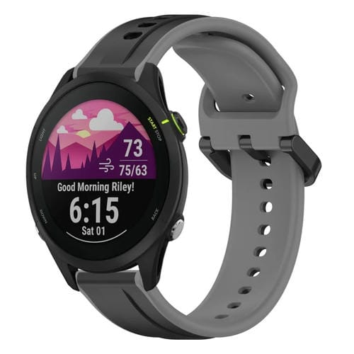 Banda de Reloj para Garmin Forerunner 255 Music Silicona Dos Colores 22mm (Negro + Gris)