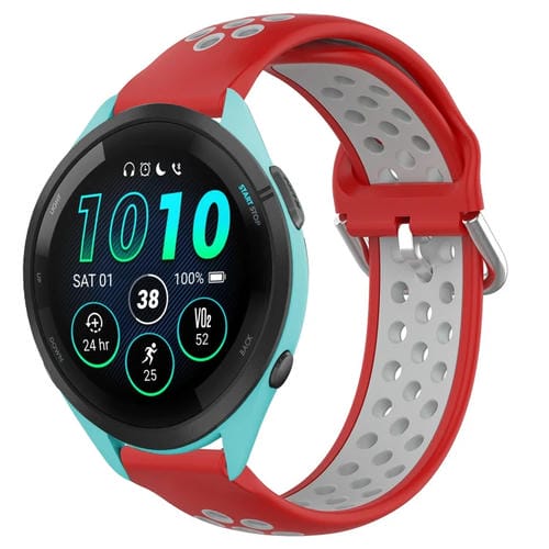 Correa de Reloj para Garmin Forerunner 265 22mm Silicona Deportiva Transpirable Perforada (Rojo + Gris)