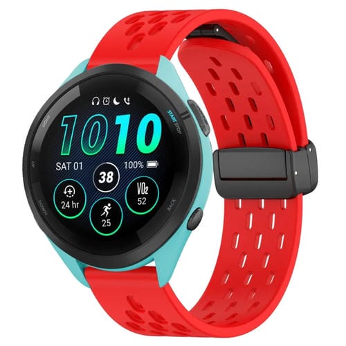 Correa de Silicona para Garmin Forerunner 265 con Cierre Magnético Plegable de 22mm (Rojo)