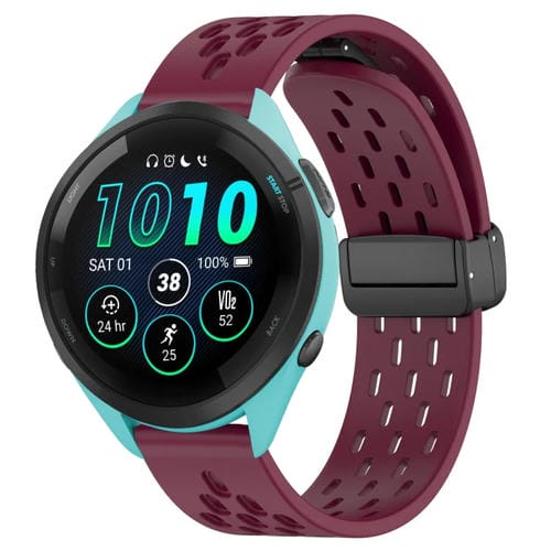 Correa de Reloj para Garmin Forerunner 265 Silicona Cierre Magnético Plegable 22mm (Rojo Vino)