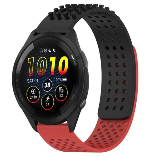 Correa de Silicona para Garmin Forerunner 265 con Puntos 3D Transpirables y Orificios de 22mm (Negro + Rojo)