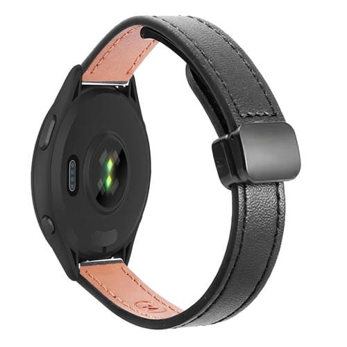 Correa de Reloj para Garmin Forerunner 265 Music Cuero Microfibra Hebilla Magnética 22mm (Negro)