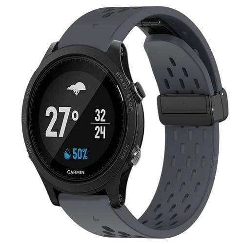 Correa de Silicona para Garmin Forerunner 935 con Orificio y Hebilla Plegable 22mm (Gris Oscuro)