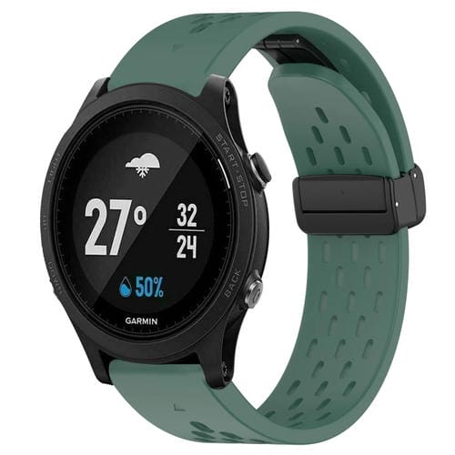 Correa de Reloj para Garmin Forerunner 935 de Silicona con Hebilla Plegable y Orificios 22mm (Verde Oscuro)