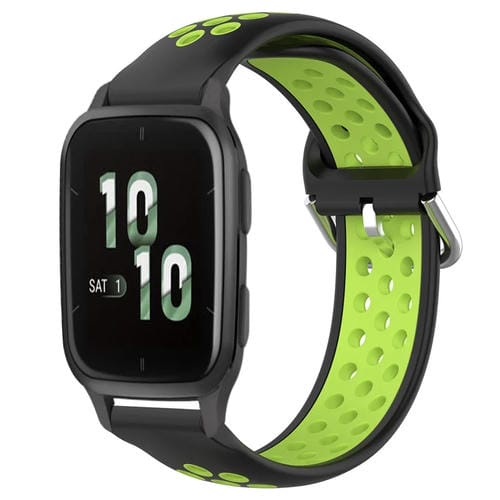 Correa de Reloj 20mm Garmin Forerunner Sq2 Silicona Deportiva Transpirable Perforada (Negro + Lima)