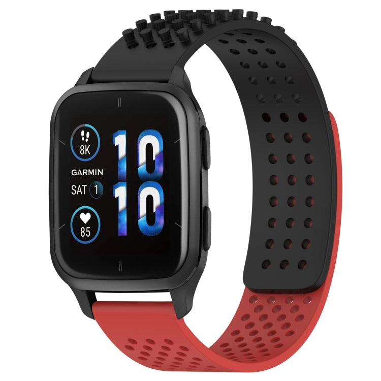 Correa de Reloj de Silicona para Garmin Forerunner Sq2 con Puntos 3D Transpirables y Orificios 20mm (Negro + Rojo)