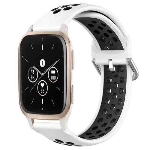 Banda de Reloj silicona deportiva para Garmin Forerunner Sq2 Music 20mm transpirable perforada (Blanco + Negro)