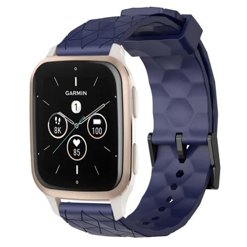 Banda de Reloj de Silicona Para Garmin Forerunner Sq2 Music 20mm Patrón de Fútbol (Azul Marino)