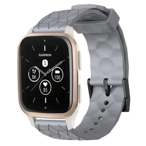 Banda de Reloj de Silicona para Garmin Forerunner Sq2 Music 20mm con Patrón de Fútbol (Gris)