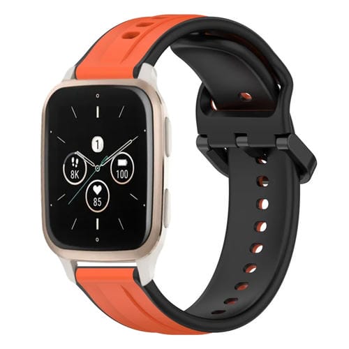 Banda de Reloj Garmin Forerunner Sq2 Music Silicona Dos Colores Bucle Convexo 20mm (Naranja + Negro)