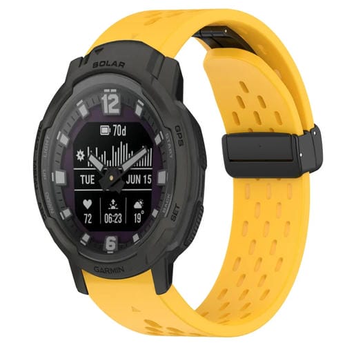 Correa de Silicona para Garmin Instinct Crossover Solar con Orificio y Hebilla Plegable 22mm (Amarillo)
