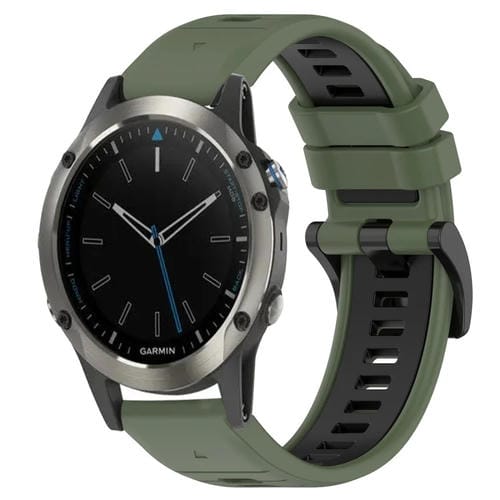 Correa para Garmin Quatix 5 Sapphire 22mm Silicona Deportiva Dos Colores (Verde Oliva + Negro)