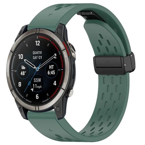 Correa de Silicona para Garmin Quatix 7 Pro con Hebilla Plegable Magnética y Orificios 22mm (Verde Oscuro)