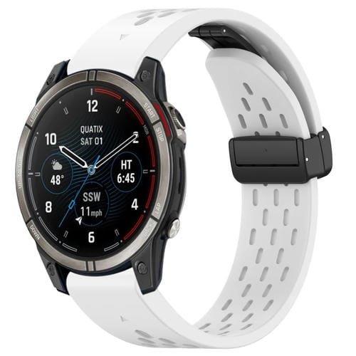 Correa de Silicona para Garmin Quatix 7 Pro con Hebilla Plegable Magnética y Orificios 22mm (Blanco)