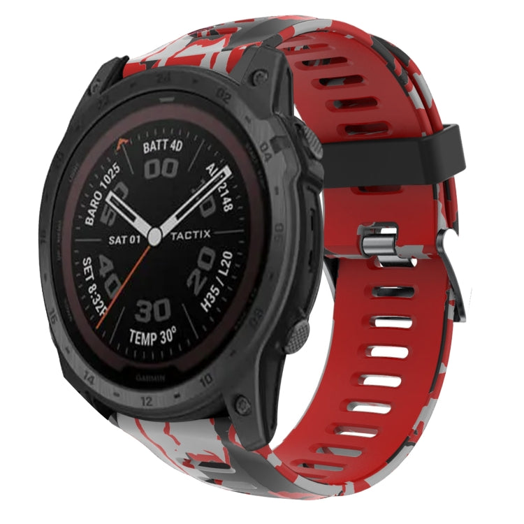 Correa de Reloj Garmin Tactix 7 Pro 26mm Silicona Estampado Camuflaje (Rojo + Ejército)