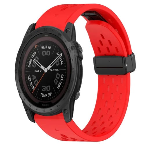 Correa de Silicona para Garmin Tactix 7 Pro con Orificio y Hebilla Plegable 26mm (Rojo)