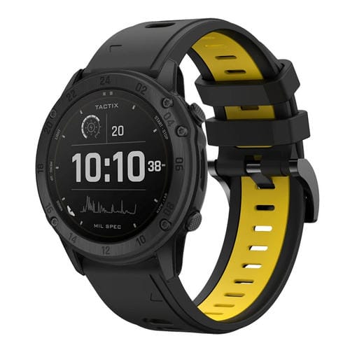 Banda de Reloj de Silicona para Garmin Tactix Delta 26mm Deportiva Dos Colores (Negro + Amarillo)