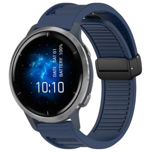 Correa de Reloj para Garmin Venu 2 de Silicona con Hebilla Magnética Plegable 22mm (Azul Medianoche)
