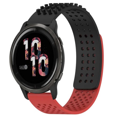 Para Garmin Venu 2 Correa de Reloj de Silicona con Puntos 3D Transpirables con Orificios de 22mm (Negro + Rojo)