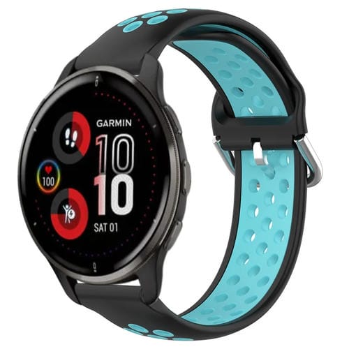Banda de Reloj para Garmin Venu 2 Plus 20mm Silicona Deportiva Transpirable Perforada (Negro + Azul)