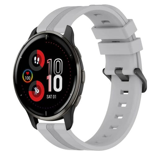 Correa de Reloj para Garmin Venu 2 Plus 20mm Silicona Cóncava a Rayas (Gris)