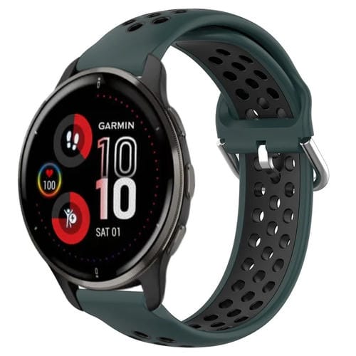 Correa de Silicona Deportiva para Garmin Venu 2 Plus 20mm Transpirable Perforada (Verde Oliva + Negro)