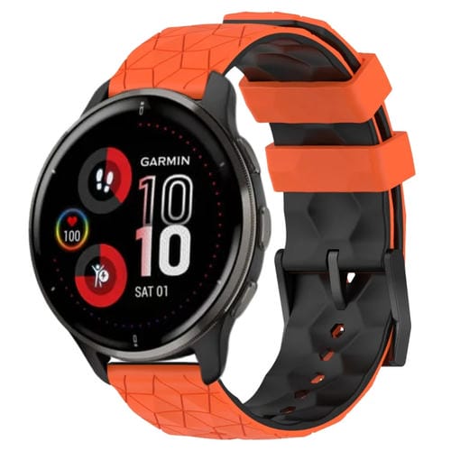 Banda de Reloj para Garmin Venu 2 Plus 20mm Patrón de Fútbol Silicona Dos Colores (Naranja + Negro)