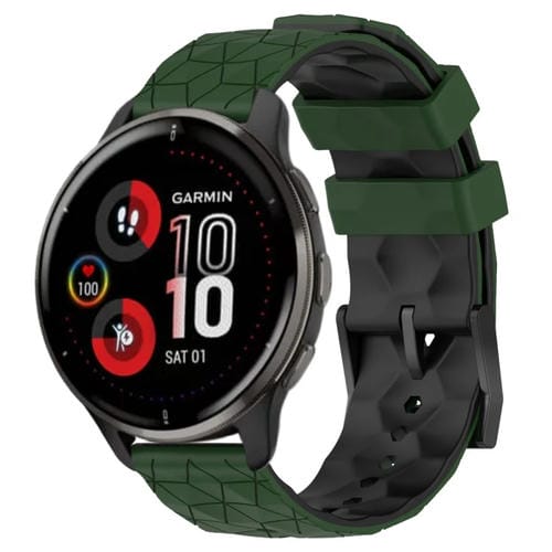 Banda de Reloj para Garmin Venu 2 Plus 20mm Patrón de Fútbol Silicona Dos Colores (Verde Militar + Negro)