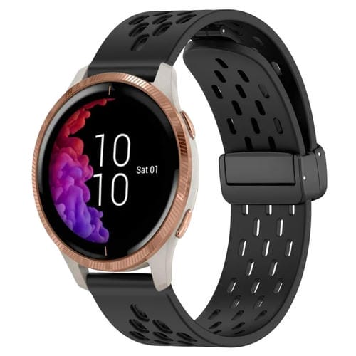 Correa de Reloj para Garmin Venu de Silicona con Cierre Magnético Plegable de 20mm (Negro)